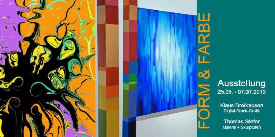 22.03. - 14.04.2019 Vernissage: 22.03.2019 - 19:30 h | FARBEN-REICH Werke von: Thomas Siefer - Malerei - Skulpturen Klaus Dreikausen - DIGITAL ART Kleine Galerie - Karin Unshelm Am Markt 26 42799 Leichlingen-Witzhelden Öffnungszeiten: Sa. 23.03., 30.03., 06.04.2019 jeweils 16:30-19:00 Uhr So. 24.03., 31.03., 07.04.2019 jeweils 11:00-16:00 Uhr Während der angegebenen Zeiten sind die Künstler anwesend. ![]() | |